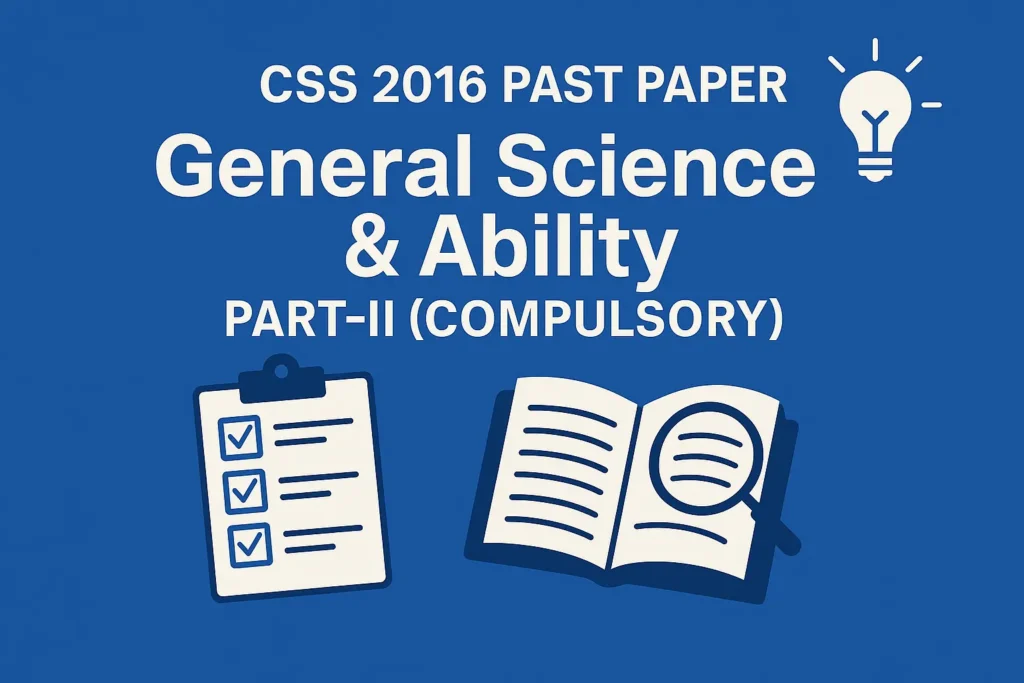 - โ These CSS Past Paper 2016 General Science and Ability Descriptive questions are compiled from authentic FPSC CSS past papers, following the real written exam format.